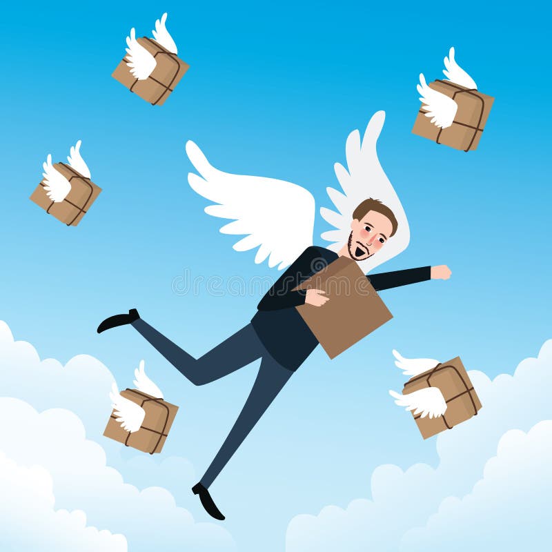 Send Delivery Box Fast Flying with Wings Stock Vector Illustration of