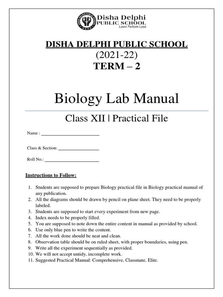 Lab Manual/Practical Manual Archives S. DINESH PUBLICATIONS Biology Lab Manual Class 12 Get here cbse lab manual class 12 with solutions to help score better in practical exams. The present laboratory manual will be complementary to the textbook of biology for class xii. Here is the ncert class 12 biology lab manual provided in pdf format that can be used by the students who follow ncert. Cbse class 12 biology lab manual. Biology Lab Manual Class 12.