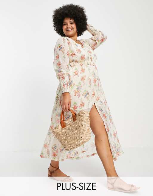 Simply be button through maxi dress in cream floral print ASOS
