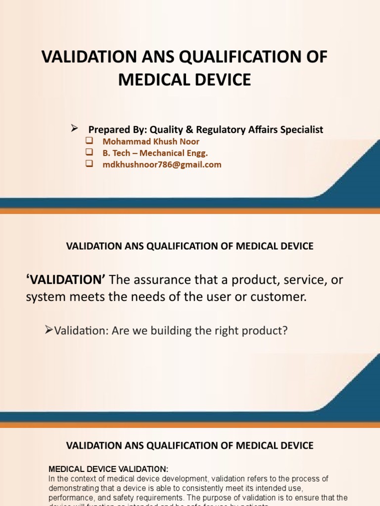 Validation & Qualification of Medical Device PDF Verification And
