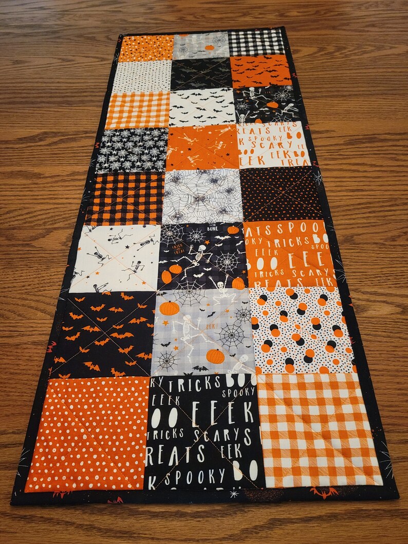 Halloween Table RunnerReversibleFree Shipping to Etsy Quilted Table Runner Patterns Halloween Your stash of halloween novelty fabrics will disappear when you create a spooky table topper with a classic black and orange. Sew a festive table runner for your halloween table with this collection of over a dozen free halloween table runner patterns, tutorials, and. “monster munchies” is a free halloween quilted table runner pattern designed by jean anne sharrai and. Table Runner Patterns Halloween.