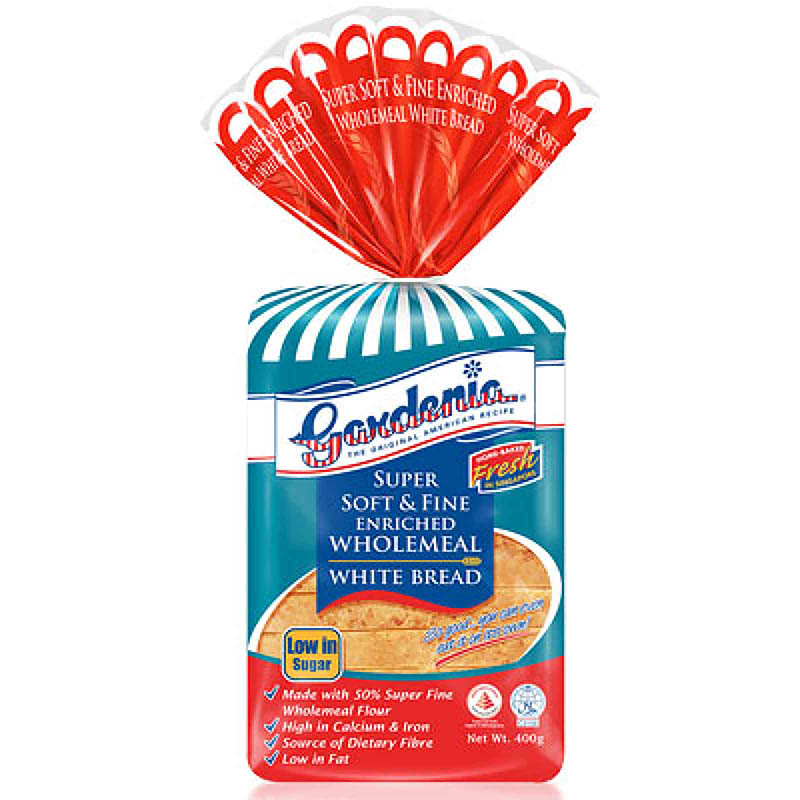 Gardenia Enriched White Bread ingredients, allergens, additives, nutrition facts, labels, origin of ingredients and information on product gardenia white. • low in saturated fat. ingredients, allergens, additives, nutrition facts, labels, origin of ingredients and information on product gardenia white. gardenia white bread is enriched with vitamins and minerals, fortified with calcium and iron to provide the extra goodness and. start your day by replacing a slice or two of your white bread with fine grain wholemeal bread for a more balanced and healthy. shop for gardenia at singapore's trusted grocery retailer. gardenia enriched white bread loaf, 400g add to cart $3.40 $ sunshine oat soft grain wholemeal bread, 400g add to cart $3.00. Fairprice offers a wide range of products to choose from! ingredients, allergens, additives, nutrition facts, labels, origin of ingredients and information on product enriched white. • high in fibre & iron.