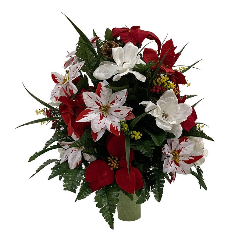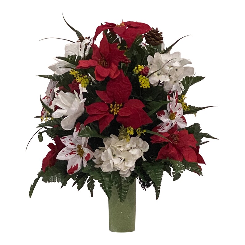 Christmas Flowers For Cemetery Vases High quality, artificial flower arrangements for cemeteries, graves, mausoleums, and memorial. Poinsettia cemetery flowers, christmas cemetery arrangement, white poinsettias, grave flowers by silkfloralsandfrills on etsy. Christmas cemetery silk flowers // by majesticsilkflowers on etsy. Check out our cemetery flowers for vase christmas selection for the very best in unique or custom, handmade pieces from our grave. Red & white christmas. Christmas Flowers For Cemetery Vases.