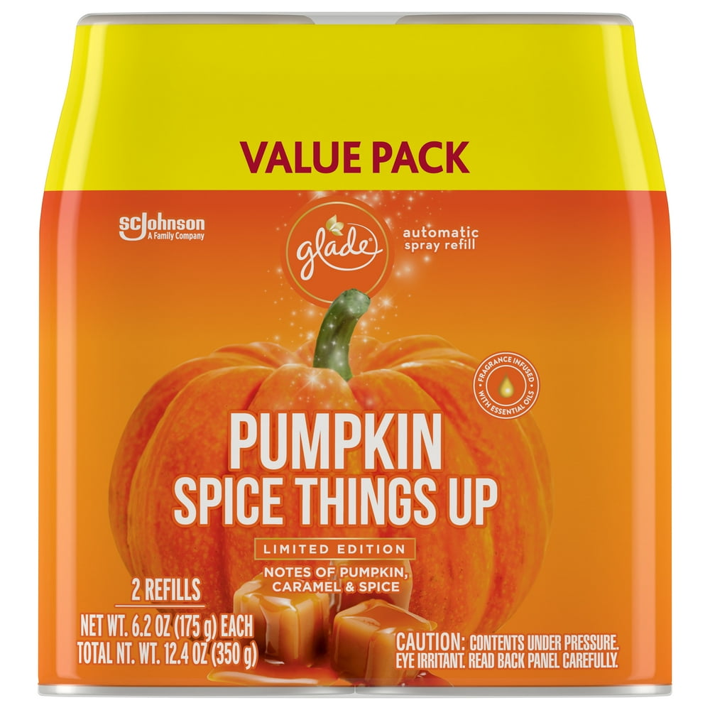 Glade Automatic Spray Air Freshener Refills, 6.2 Ounce Cans (Pumpkin Glade Spray Pumpkin Spice Things Up Turn up the season with golden pumpkin & spice, a limited edition air freshener spray from the glade holiday glow collection. Stir up the season with pumpkin spice things up, a limited edition automatic air freshener spray from the glade holiday spirit collection notes. Stir up the season with glade pumpkin spice things up air freshener for home. This scent. Glade Spray Pumpkin Spice Things Up.