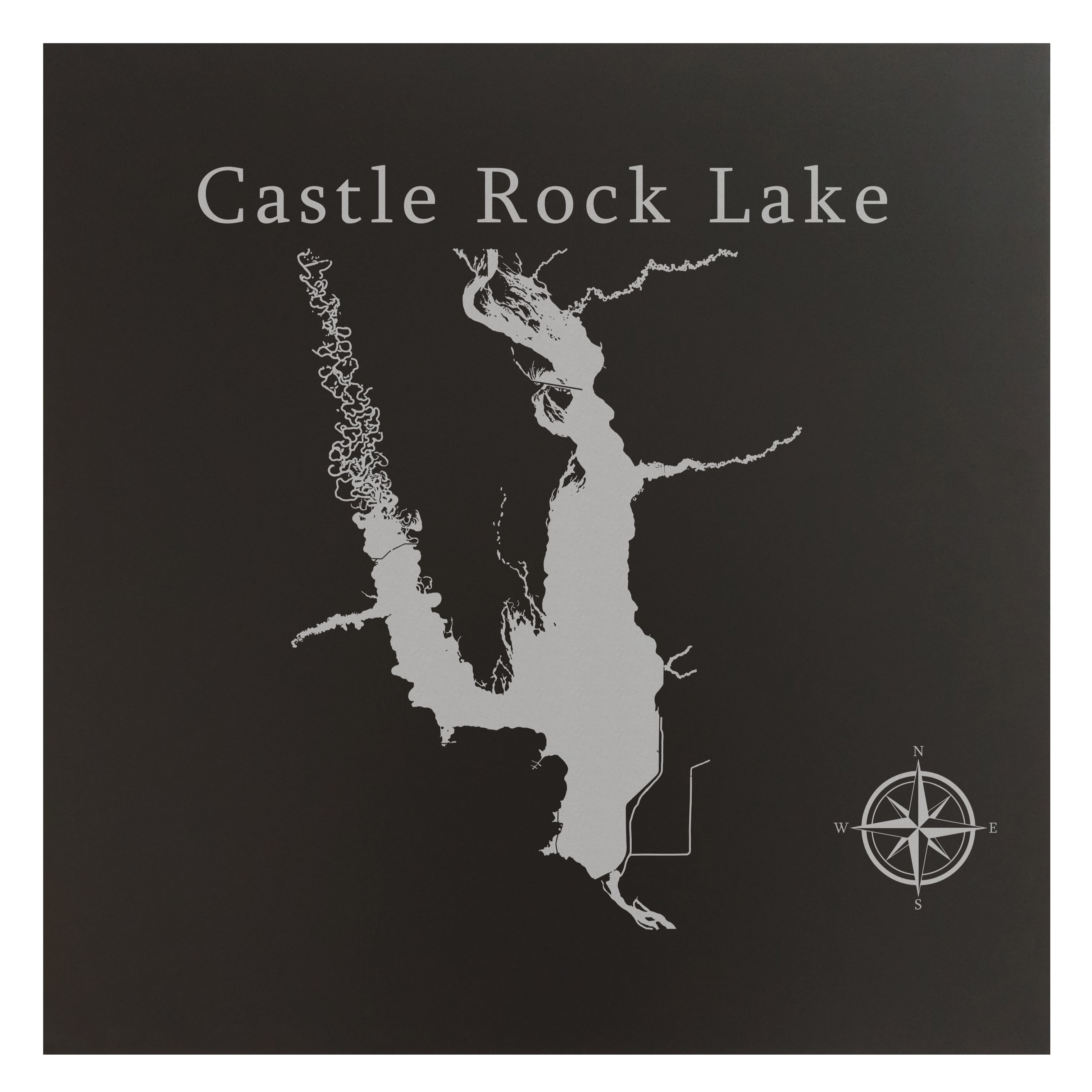Castle Rock Lake Map 24x24" Black Metal Wall Art Office Decor Engraved