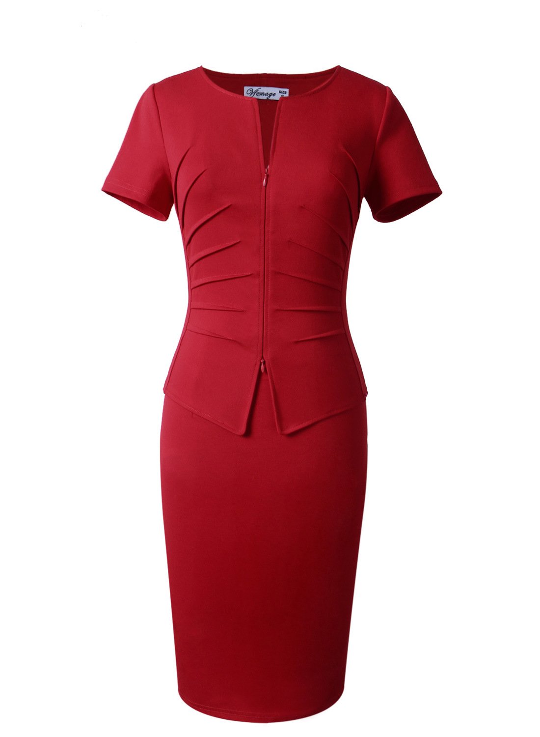 VfEmage Womens Elegant Zip Front Pleated Peplum Wear to Work Sheath Dress