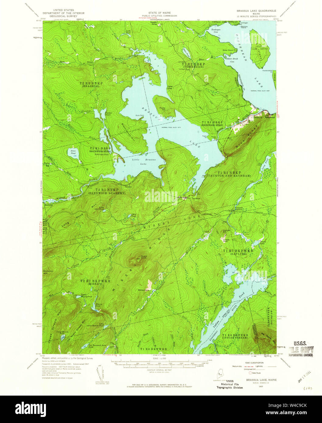 Maine USGS Historical Map Brassua Lake 460241 1957 62500 Restoration