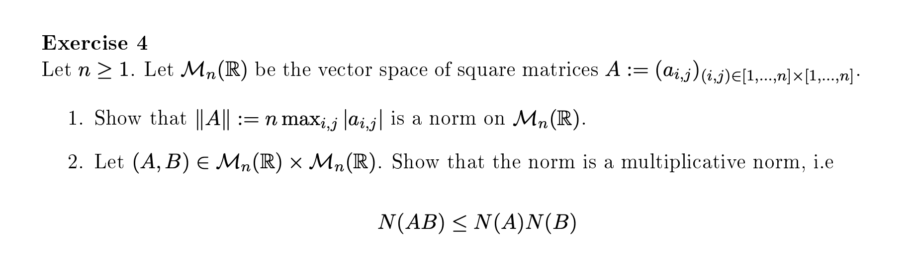 Solved * * * Advanced Calculus Normed Vector Spaces and
