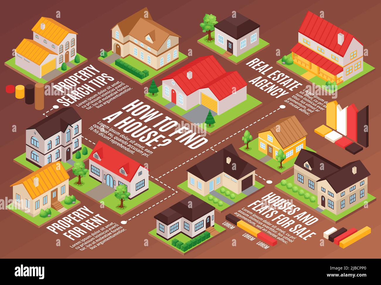 Private houses for rent and sale horizontal isometric flowchart 3d
