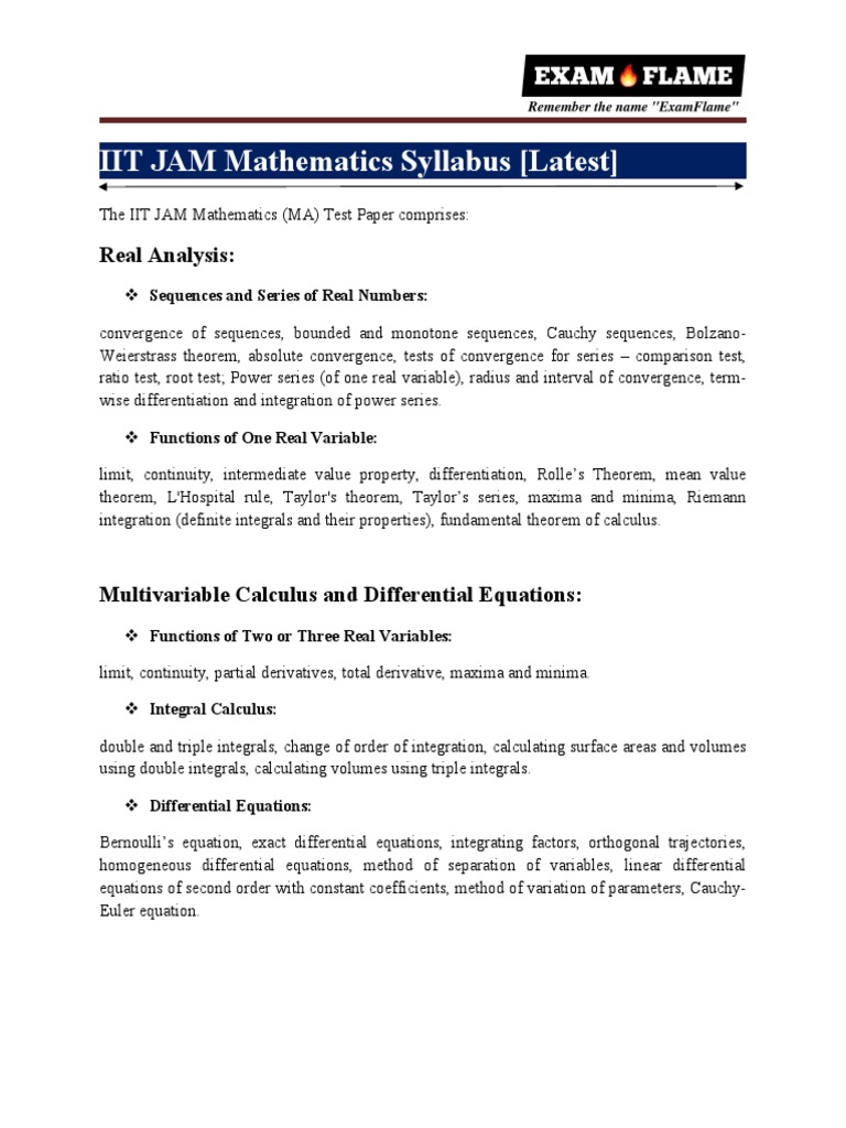 IIT JAM Mathematics Syllabus PDF