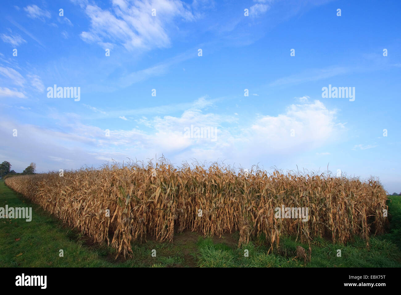 Indian corn, maize (Zea mays), overripe corn field at the end of
