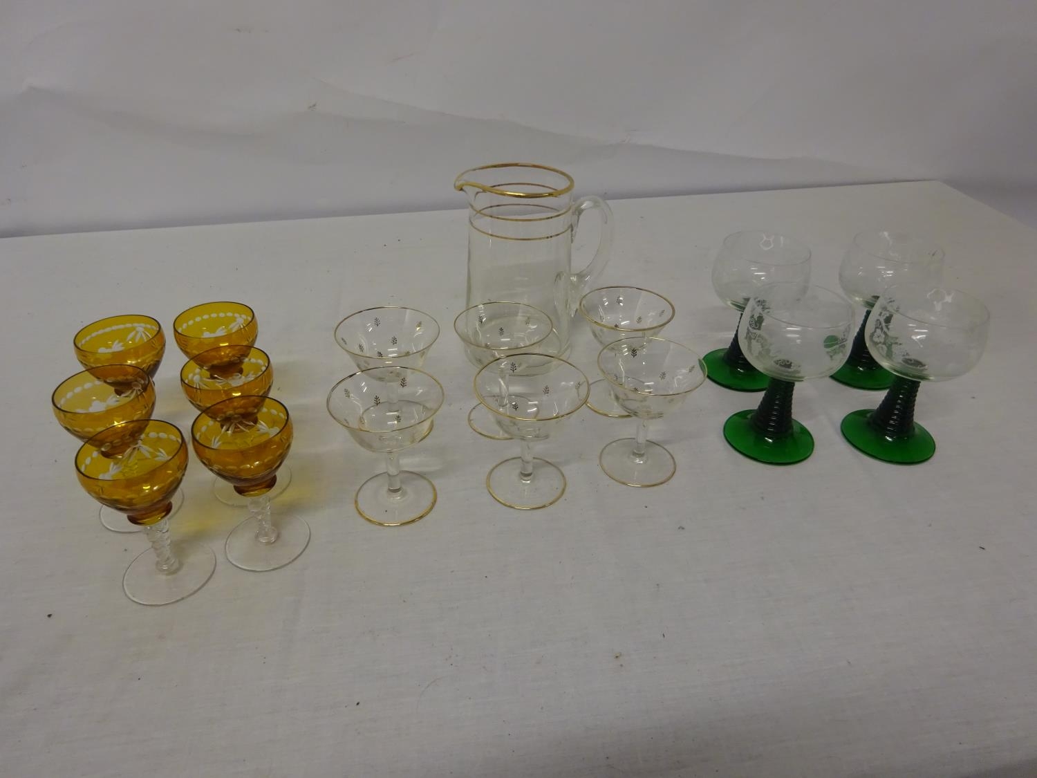 Collection of attractive glass ware (Martini) and jug.
