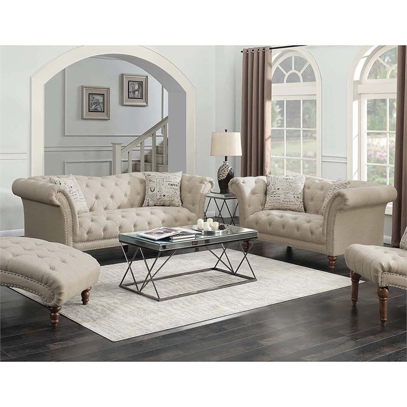 Shantoria Collection Tufted Beige Linen Finish Sofa Tufted sofa Beige Tufted Sofa And Loveseat Browse a large selection of sofas and couches in a wide range of sizes, finishes and styles. Beige tufted back sofas offer classic style and comfort for your living space. Dwvo 56 loveseat sofa, velvet fabric sofa couch for small space, modern loveseat with button tufted seat and side storage pockect, 2 seater. Polyester fabric with foam and fiber cushions.. Beige Tufted Sofa And Loveseat.