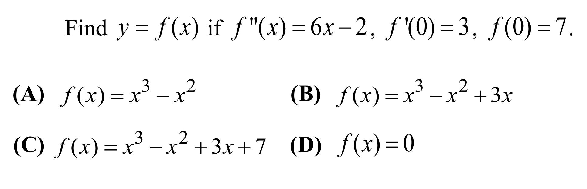 Solved Find y = f(x) if f "(x) = 6x2, f(0) = 3, f(0) = 7.