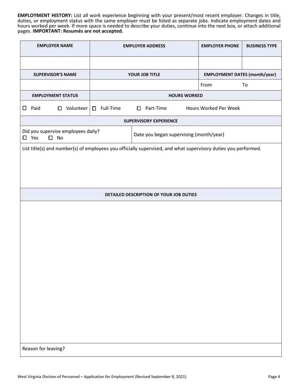 West Virginia Application for Employment Fill Out, Sign Online and Download PDF Templateroller