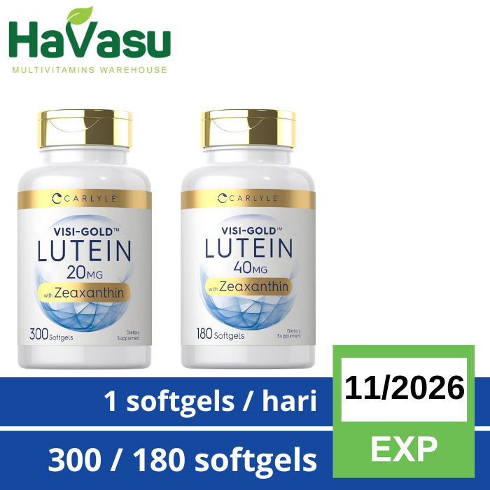 Jual CARLYLE VISIGOLD LUTEIN 40 mg with Zeaxanthin 180 Softgels Visi Gold Zeaxanthin Powerful antioxidant, featuring carotenoids lutein and zeaxanthin from marigold extract. Powerful antioxidant, featuring carotenoids lutein and zeaxanthin from marigold extract. Featuring carotenoids lutein and zeaxanthin from marigold extract. Featuring carotenoids lutein and zeaxanthin from marigold extract. Provides 40 mg of lutein and 2 mg of zeaxanthin in each quick. Powerful antioxidant, featuring carotenoids lutein and zeaxanthin from marigold extract. Visi Gold Zeaxanthin.