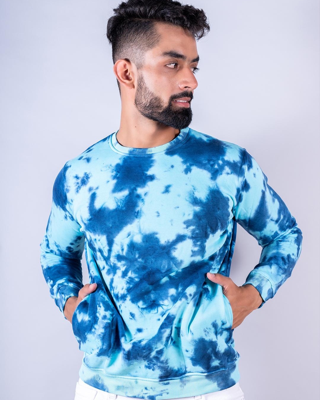 Buy Men's Blue Tie & Dye Relaxed Fit Sweatshirt Online at Bewakoof