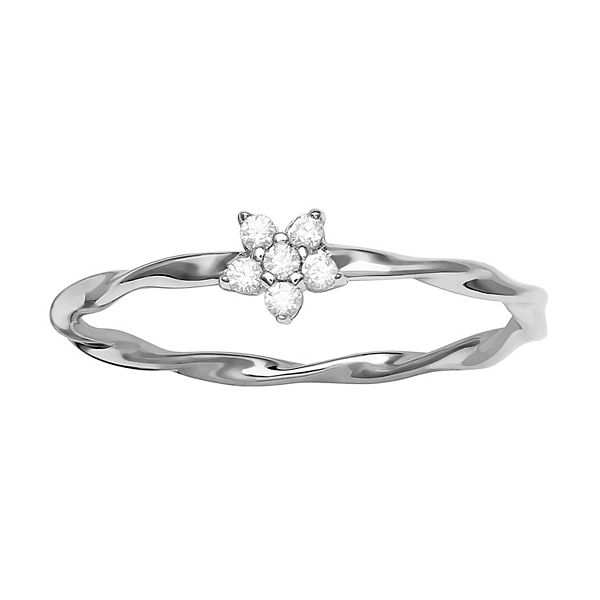 PRIMROSE Sterling Silver Cubic Zirconia Flower Twist Ring