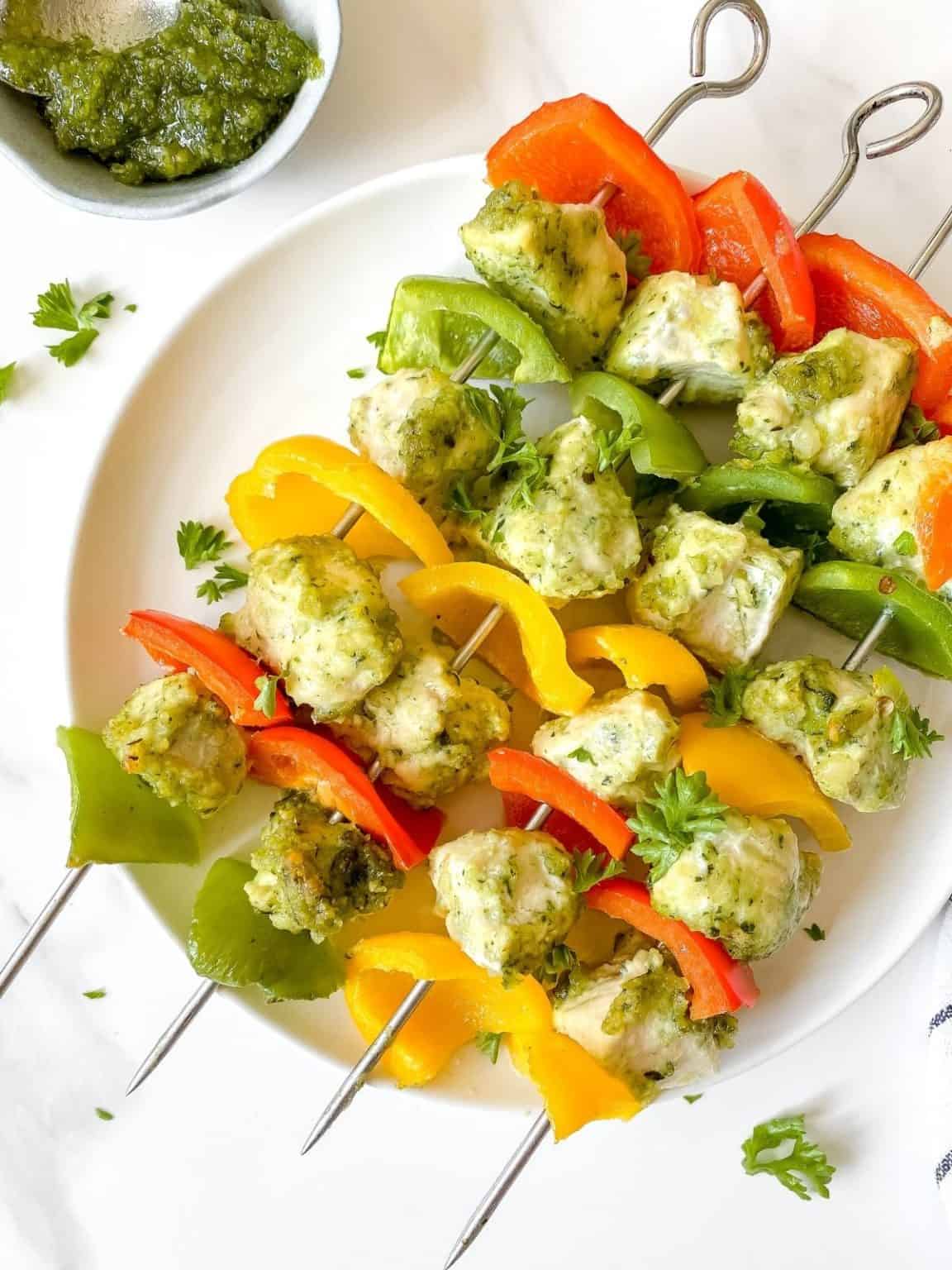Pesto Chicken Skewers (Grilled) Through The Fibro Fog