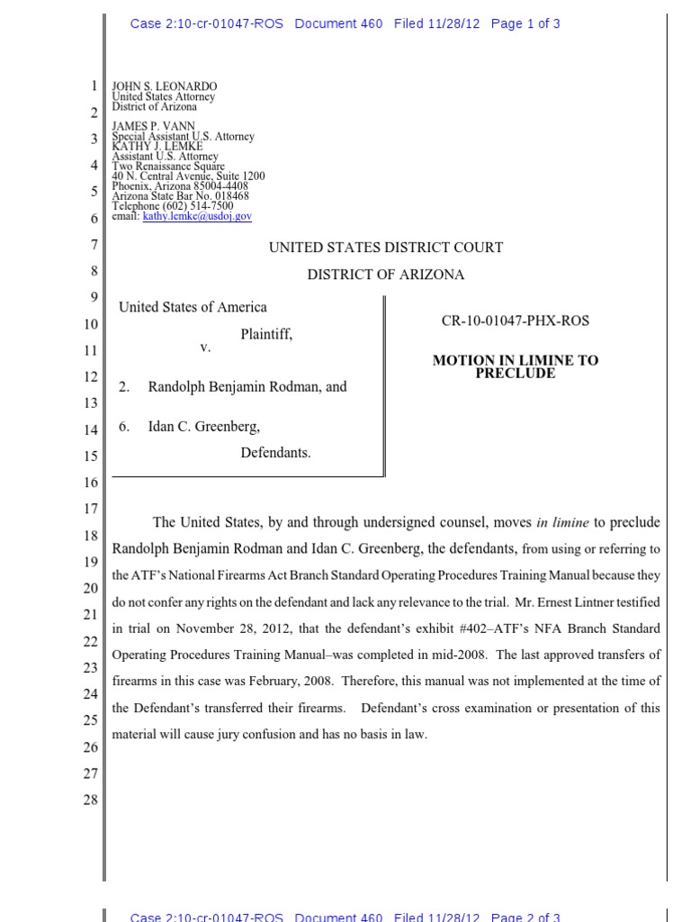 Motion in Limine by James Vann PDF Bureau Of Alcohol Judiciaries