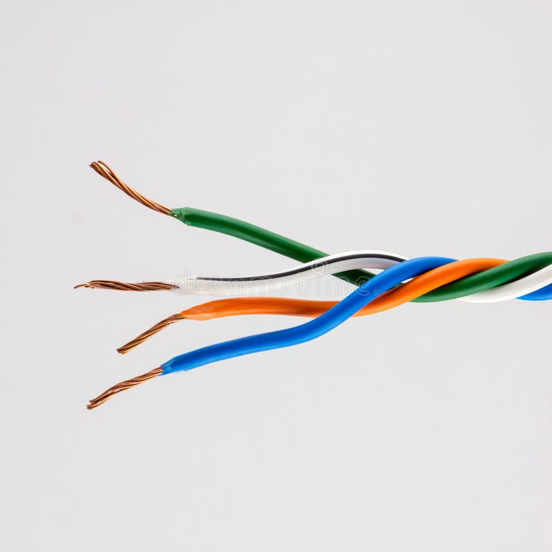 Electric Cable Ends, Isolated on White. Colorful Bundle of Elect Stock