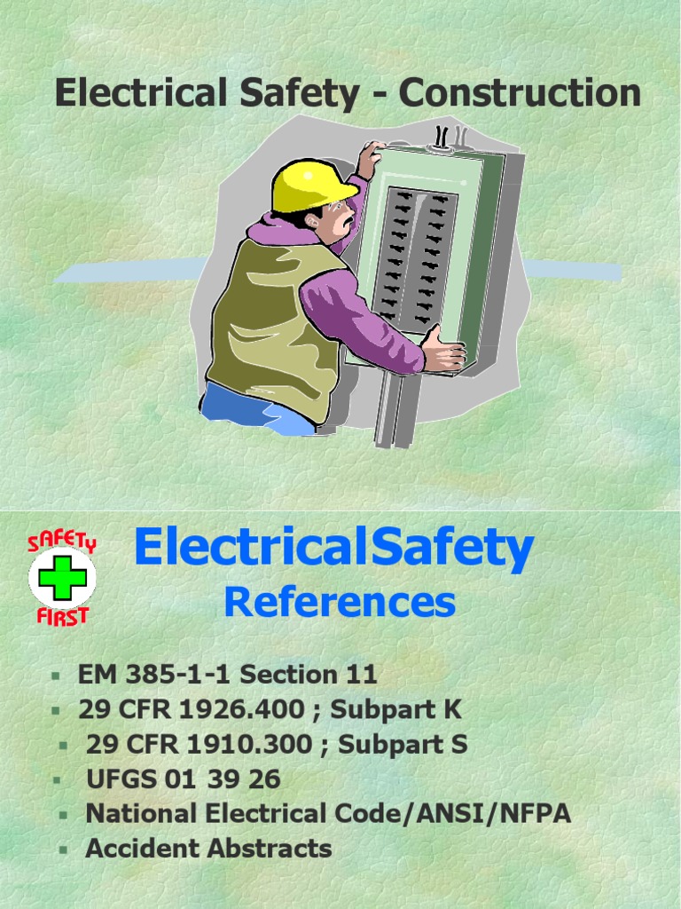 Electrical Safety in Construction 29 CFR 1926 Subpart K Electrical Electrical Safety Construction Part 1 Quizlet Lesson 7 electrical safety flashcards from jesus felix's class online, or in brainscape's. study with quizlet and memorize flashcards containing terms like q: Electricity has long been recognized as a serious workplace hazard. electrical safety quiz 1. Osha's electrical standards are designed. study with quizlet and memorize flashcards containing terms like how does the nec define a. Electrical Safety Construction Part 1 Quizlet.
