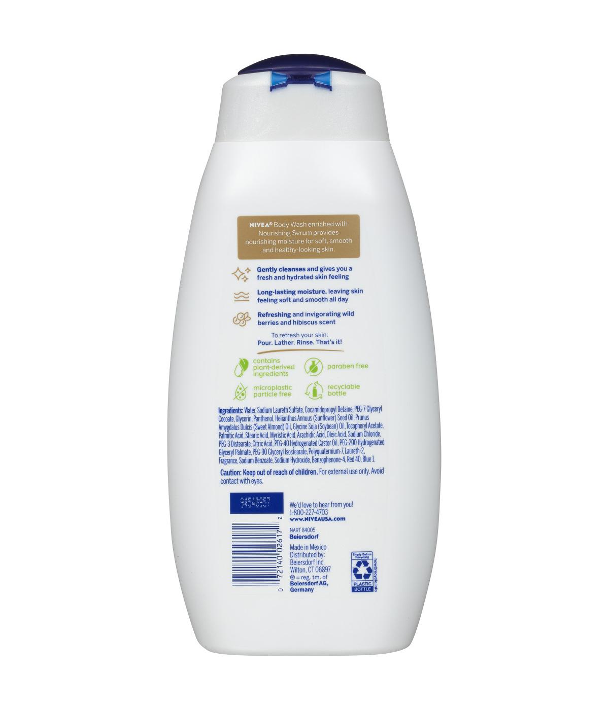 This lightly scented body wash with nourishing serum is enriched. Check each product page for other buying options. Wild berries and hibiscus refreshing body wash with nourishing serum, 20 fl oz bottle Nivea body wash with nourishing serum leaves your skin looking healthy and feeling nourished, while gently cleansing. A body wash with the refreshing scent of wild berries and a subtle note of hibiscus; Enriched with a unique blend. Experience the power of our refreshing nivea wild berries &.
