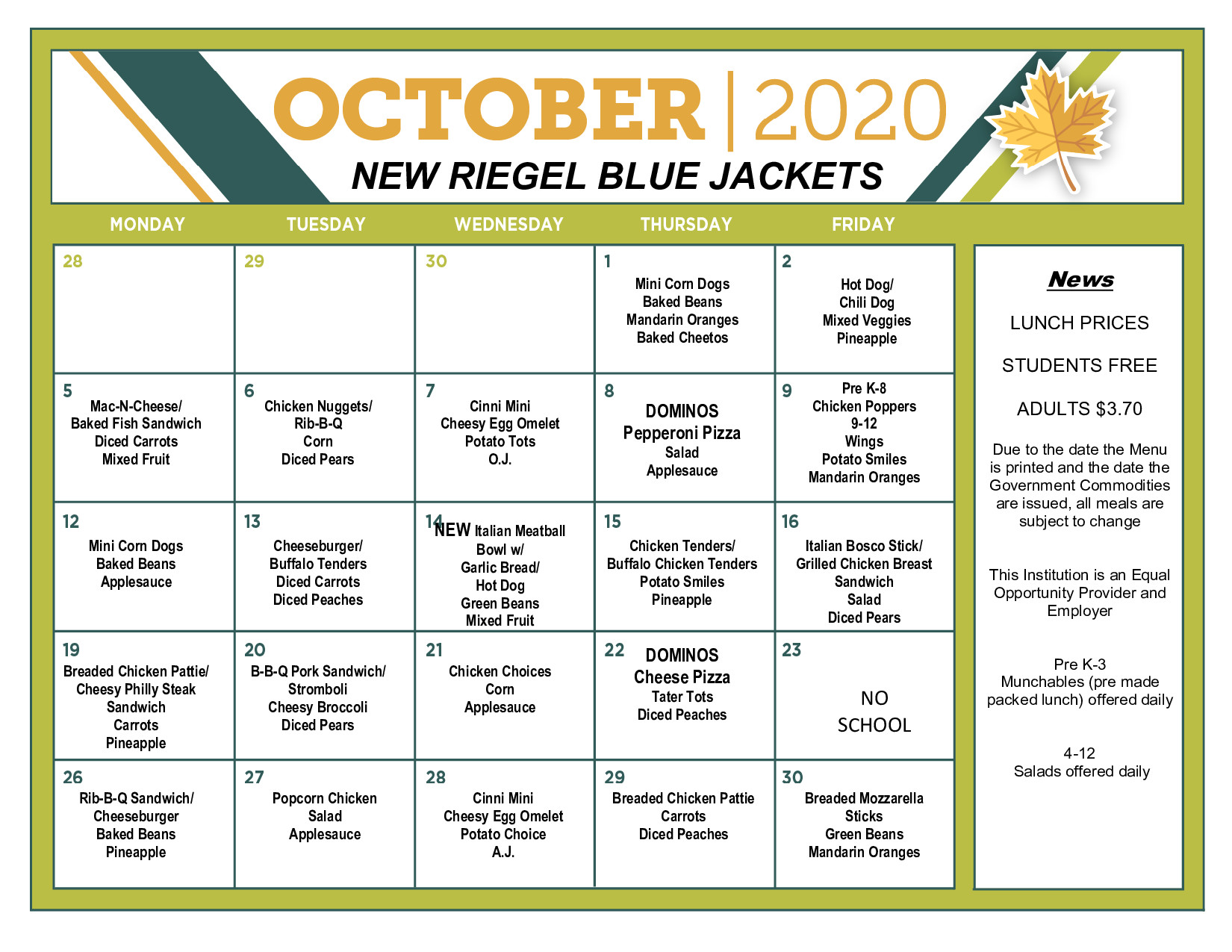 New School Lunch Menu for October! St. Anne School New Riegel Schools Lunch Menu View your learner's meal options and nutritional information, including allergens. Elementary alternate lunch choices, available most days, are deli sandwiches and chef salads. On this homepage, you can find the complete menu of new riegel cafe from new riegel. The lunch menu for august 2021. American chicken combo popcorn chicken. Due to the date the. Menu is issued and the. New Riegel Schools Lunch Menu.