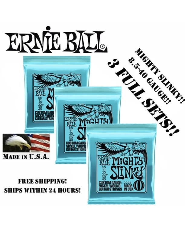 Ernie Ball 3X sets 2228 Mighty Slinky 8.540 Reverb Ernie Ball Mighty Slinky Eine wiederauflage der custom gauge strings, die ernieball in den frühen sechzigern nach den wünschen führender gitarristen entwickelte,. Ernie ball 2228 mighty slinky electric guitar strings features: String set for electric guitar. Ernie ball mighty slinky nickel wound electric guitar strings sit between the popular super slinky and extra slinky strings while providing a fast, light tension across all six.. Ernie Ball Mighty Slinky.