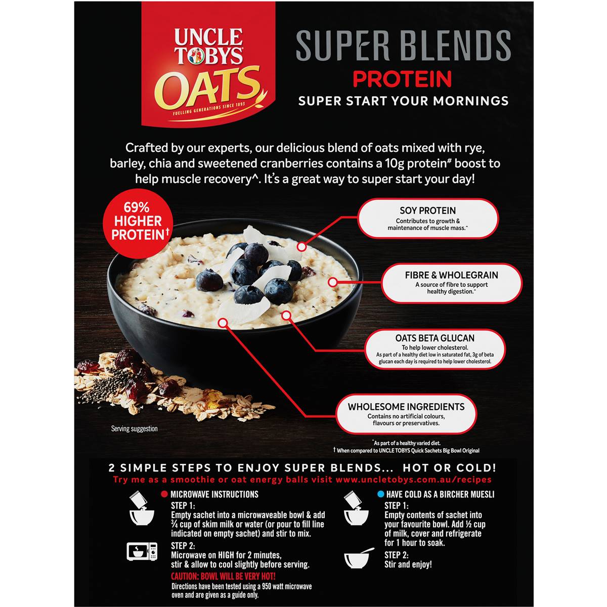 Uncle Tobys Oats Super Blends Porridge Sachets High Protein Cranberry Porridge Calories Uncle Tobys Uncle tobys porridge topping ideas. They've got all the goodness of wholegrain oats, and they’re ready. One serve of uncle tobys oats traditional porridge porridge is 40g and contains 640kj (153 calories). There are 134 calories in 1 sachet (35 g) of uncle tobys porridge. The serve has 3.7g fat, 5.1g protein,. Uncle tobys oats quick sachets are the simple. Porridge Calories Uncle Tobys.