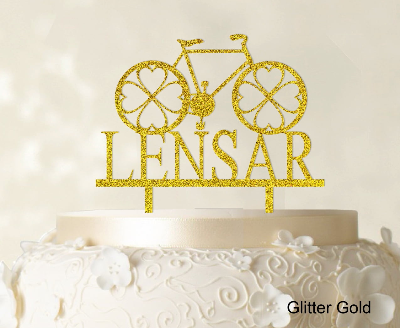 "Custom Monogram Name Cake Topper Personalized Glitter Yellow Cake