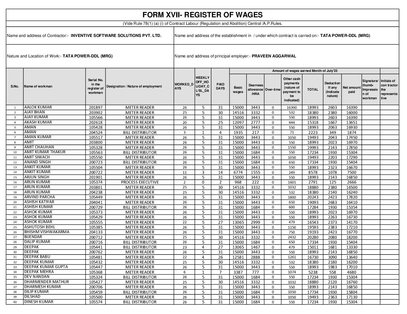 WAGE SHEET Excel TPDDL July Inventive minds at work ISSPL
