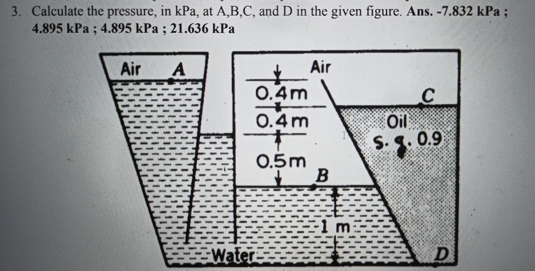 Solved Calculate the pressure, in kPa, at A,B,C, and D in