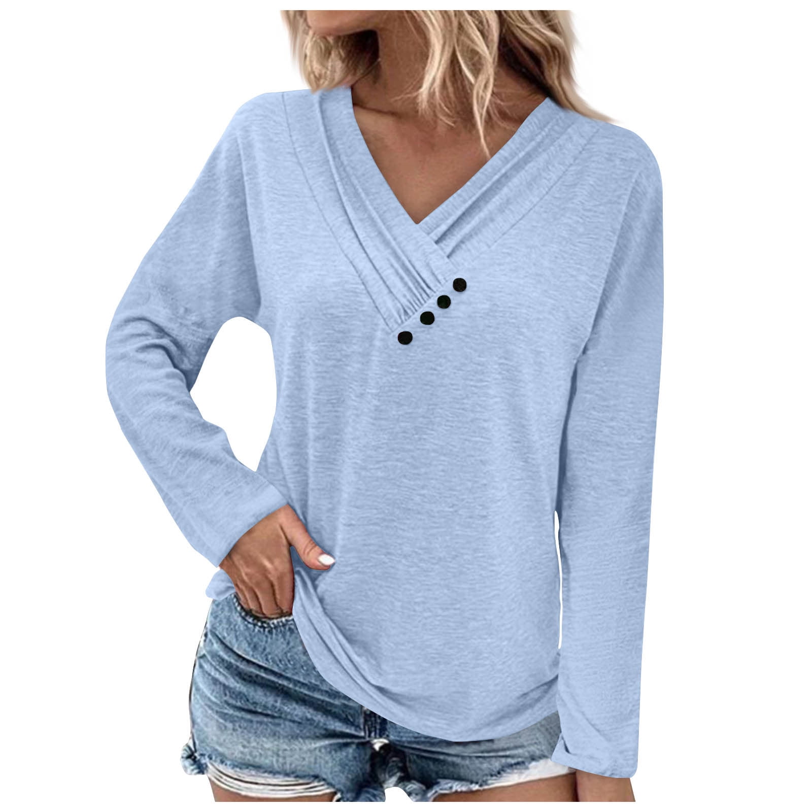 Women's Solid Colored Long Sleeve Button V Neck Basic Top Long Sleeve Button V Neck Top Shop top brands like free people, madewell, vince camuto,. upgrade your wardrobe with our range of women's v neck long sleeve tops at asos. Shop now with multiple delivery &. women long sleeve shirts fall tops v neck button up slim fit ribbed knit solid color casual shirts 2024 wrap top in soft, ribbed jersey. Long ties. Long Sleeve Button V Neck Top.