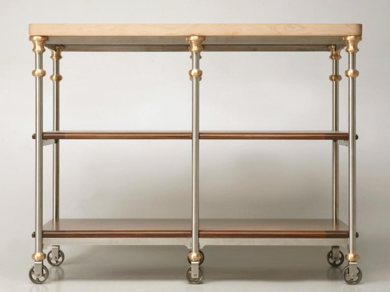 Butcher Block Kitchen Island in Stainless Steel and Bronze Available Any Size For Sale at