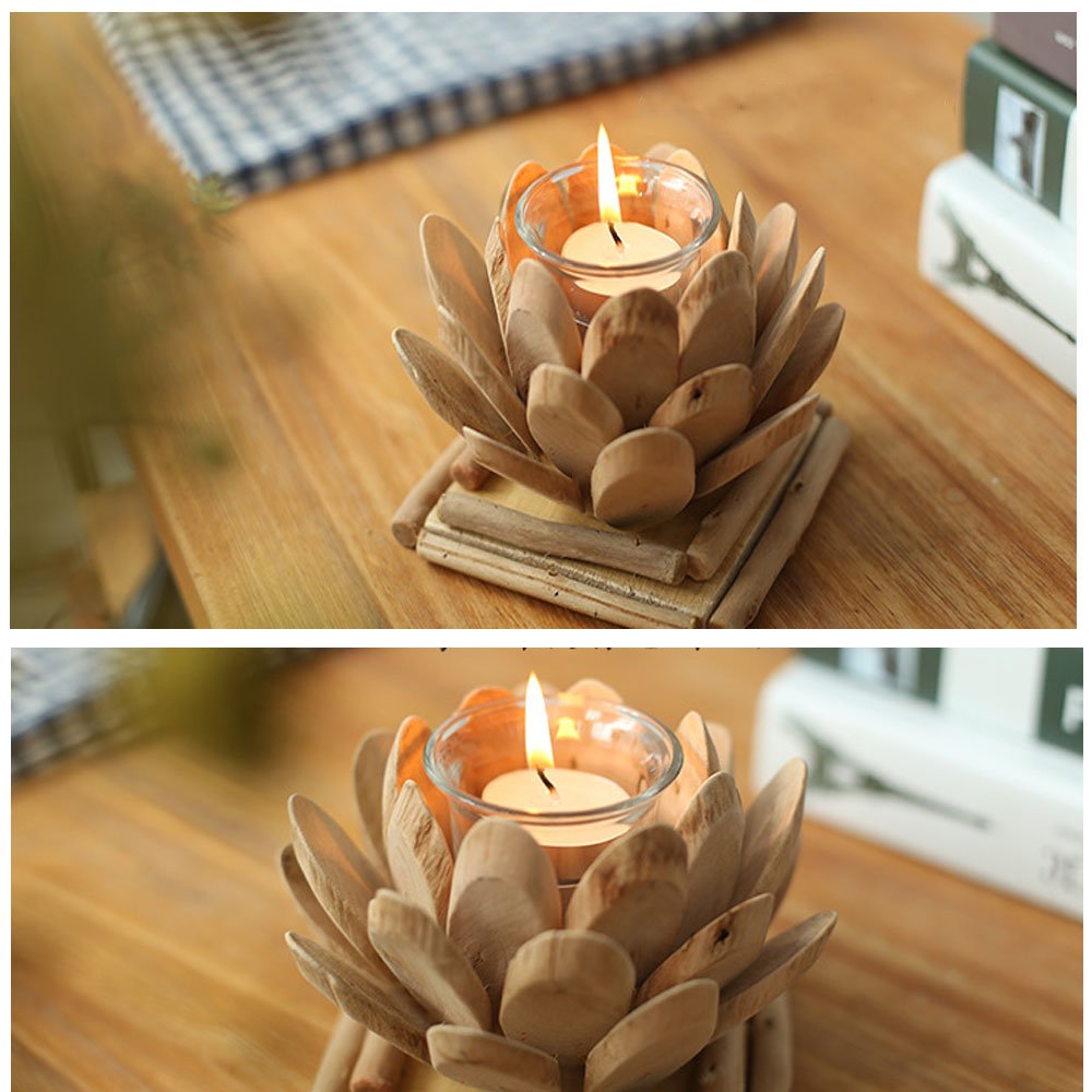 Anthree Lotus Candle Holder, Wooden Tealight Holders Handmade Ornaments Votive Holder Pastoral