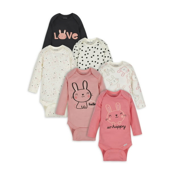 6Pack Baby Girls' Bunny Long Sleeve Onesies® Gerber Childrenswear