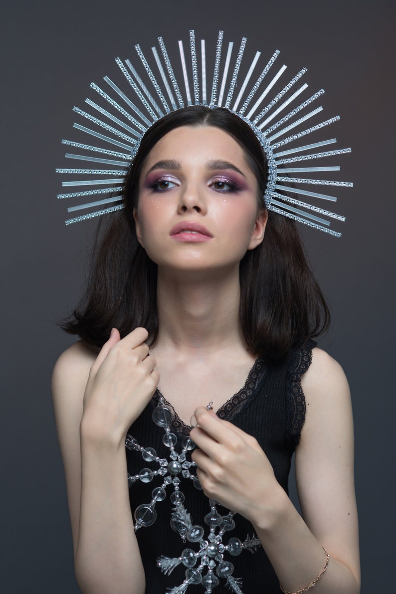Silver halo crown Maternity photo shoot crown Sunburst Crown Etsy