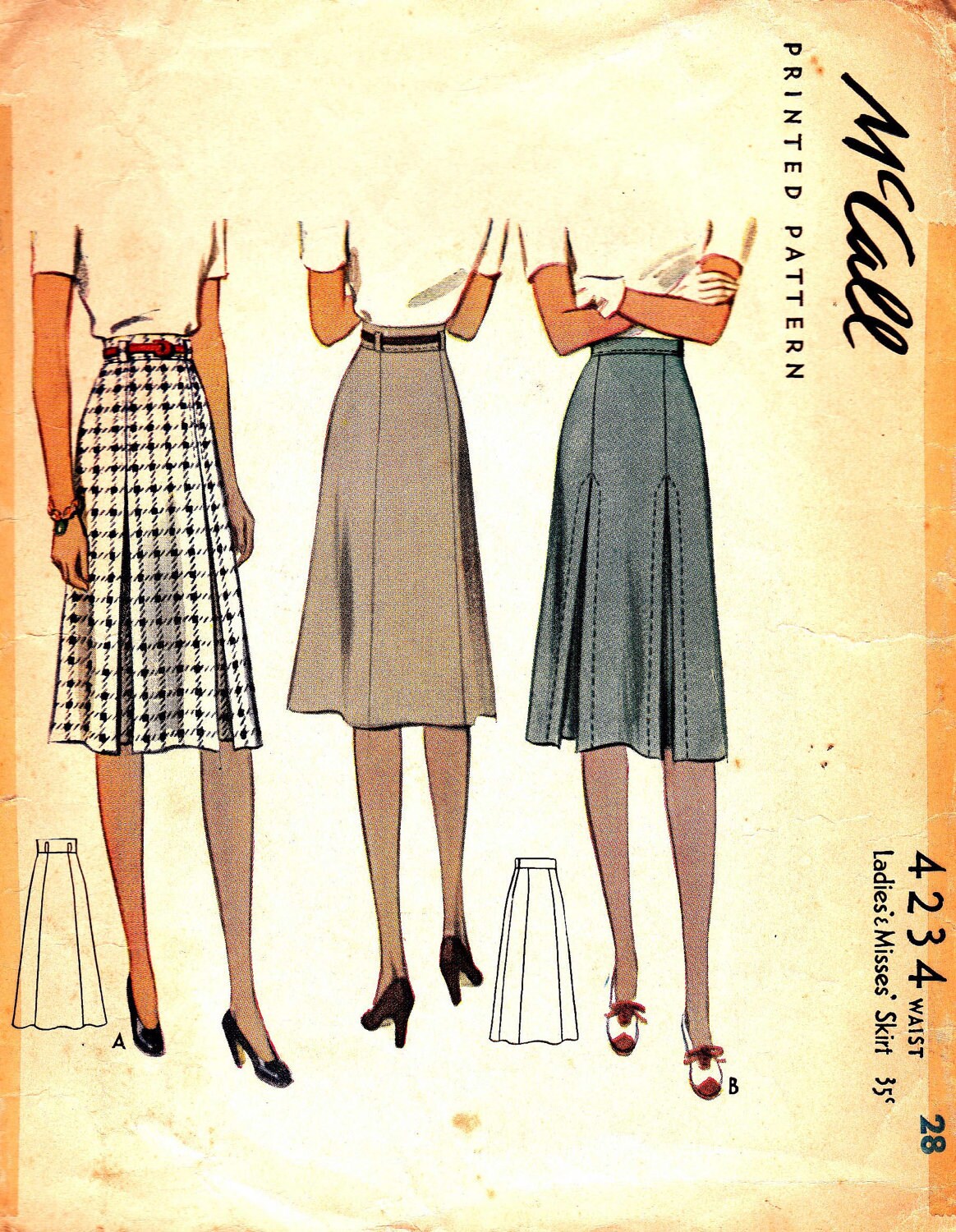 Skirt with inverted pleat 1940s Vintage Sewing Pattern McCall