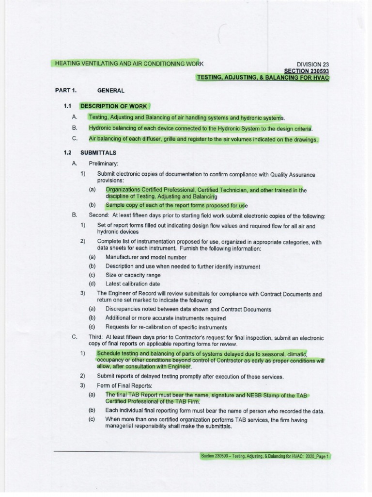 TAB Effort Specification For HVAC Systems PDF