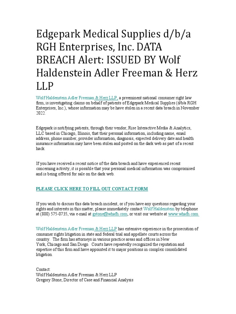 Edgepark Medical Supplies RGH Enterprises, Inc. DATA BREACH Alert PDF
