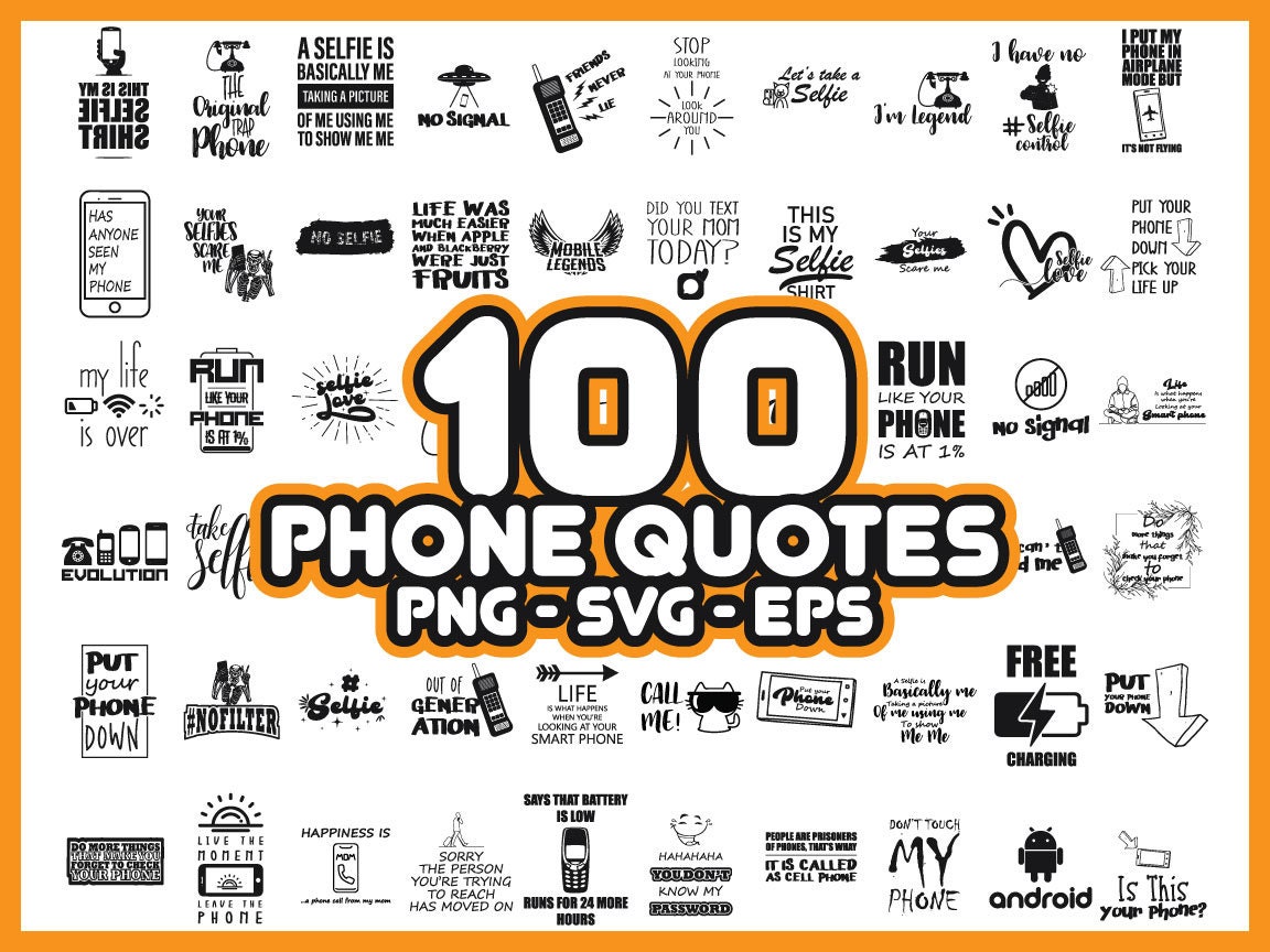 100 Phone Sayings Quotes SVG PNG Bundle Instant Download Etsy