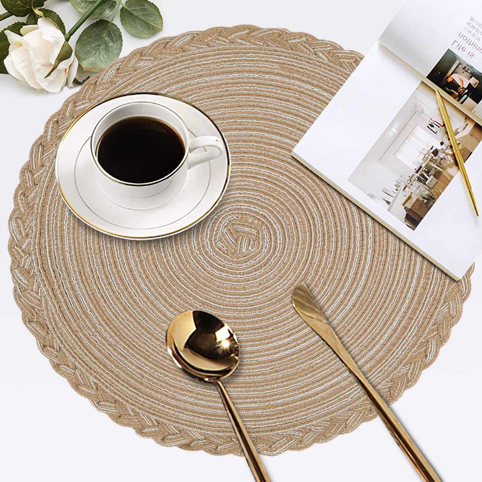 Set of 4 Burlap Round Placemats, 15" Round Burlap Table Mats with Placemats For Round Dining Tables reversible round placemats are great for round or oval tables. Made of deco foam plastic that is easy to wipe clean, this placemat has. Dive in for top picks, care tips, and ways to elevate your dining experience. Round placemats are specifically designed for round tables and are a popular choice for their seamless fit. Green stripe vintage linen. Placemats For Round Dining Tables.