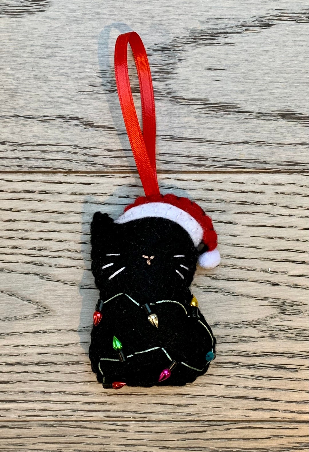 Christmas Lights Cat, Felt Cat Ornament, Cute Kitty Cat Plush