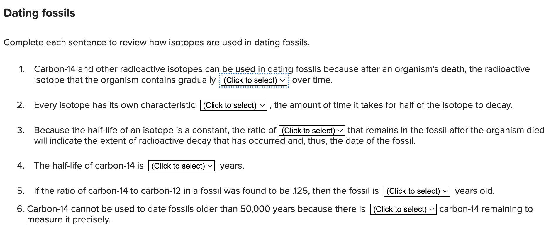 Solved Dating fossils Complete each sentence to review how