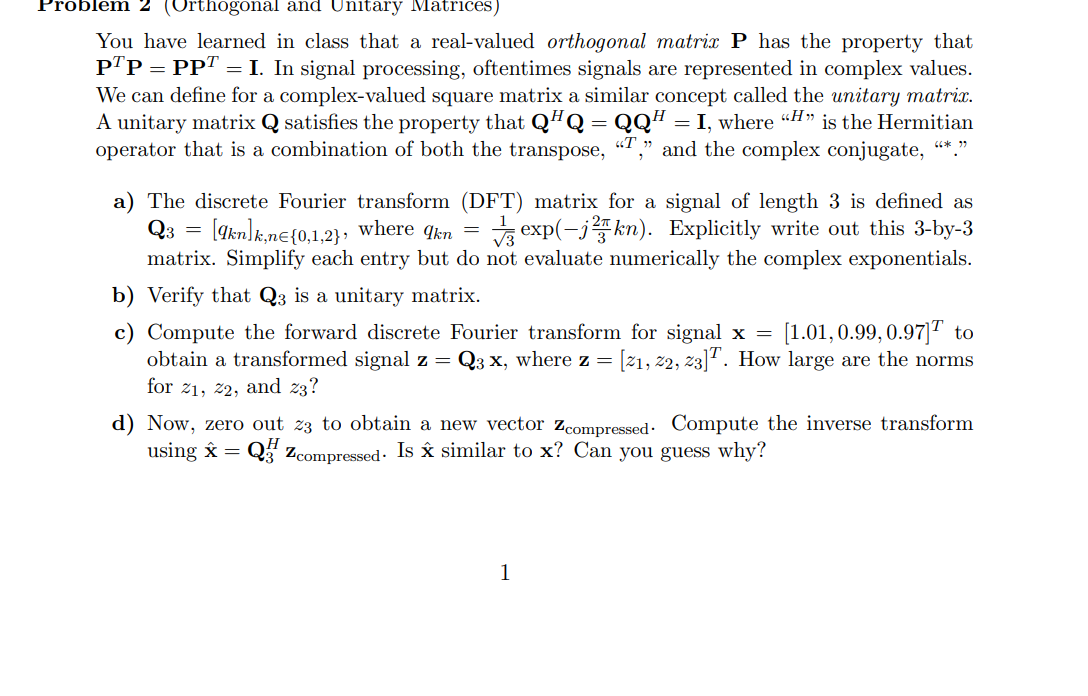 Solved Problem 2 (Orthogonal and Unitary Matrices) You have