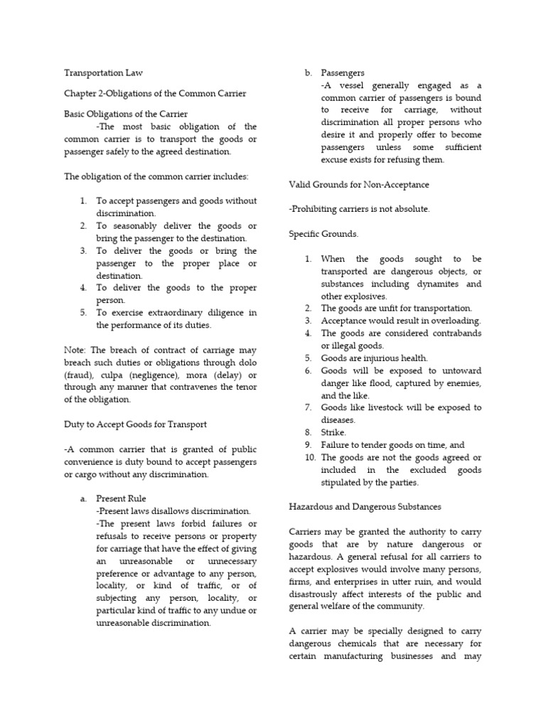 Transportation Law PDF Common Carrier Business Law