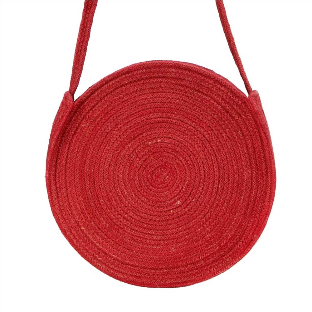 Round Shoulder Bag Rust Red Handmade Jute