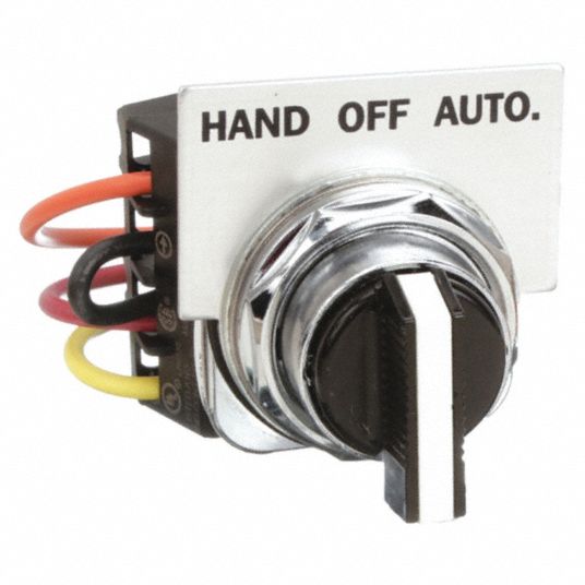 Siemens 49SAS01 Pilot Device, HandOffAuto Selector Switch, 14, 17, 18, 36, 37, 40, 83, 84, LEN Siemens Hand Off Auto Selector Switch Selector switches have control knobs that rotate between positions by. These selector switches are compatible with national electric manufacturers association (nema) motor starters. Siemens 50aa3c3 switch, station, 3 pos selector, hand off auto, 2 no 2spst, mtl base/cvr, nema1 mfr. 50aa3c3 / rs stock #:. Setting each state with an invisible button. Siemens Hand Off Auto Selector Switch.