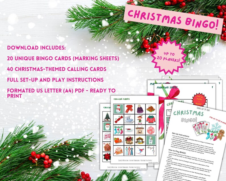 Christmas BINGO Game, Printable BINGO Christmas Game, Instant Download BINGO Game for Christmas